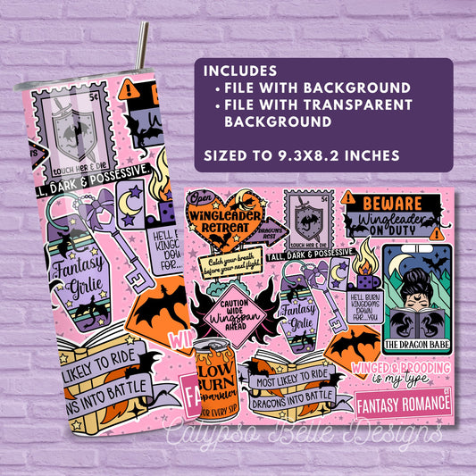 Dragon Babe, Romantasy Reader 20 oz Skinny Tumbler Seamless Wrap, Fantasy Romance Bookish Pattern