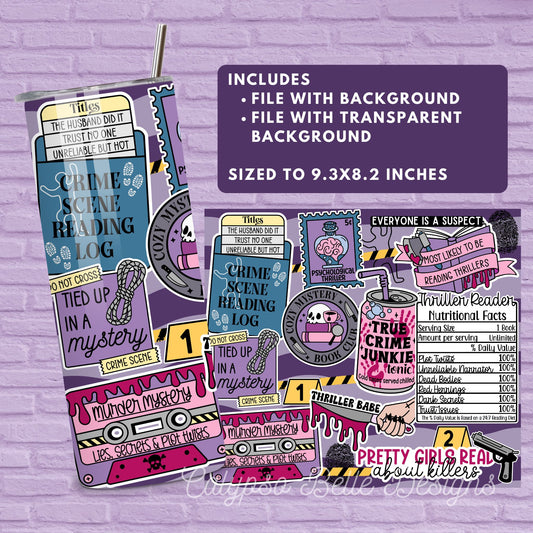 Thriller Reader 20 oz Skinny Tumbler Seamless Wrap, Bookish Pattern