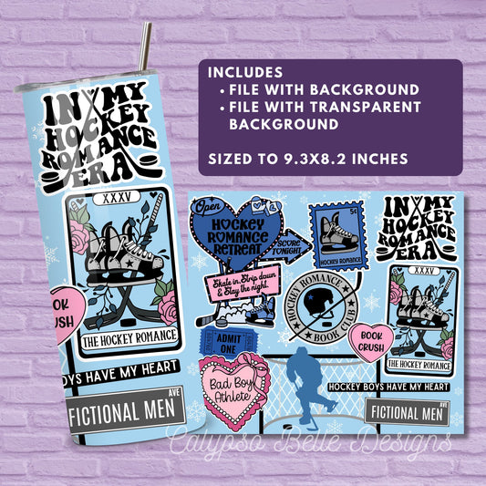 Hockey Romance Reader 20 oz Skinny Tumbler Seamless Wrap, Bookish Pattern