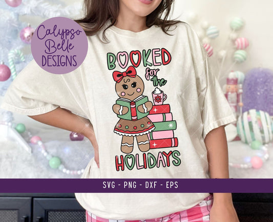 Booked for the Holidays, Gingerbread Girl Reading, Bookish Christmas Design