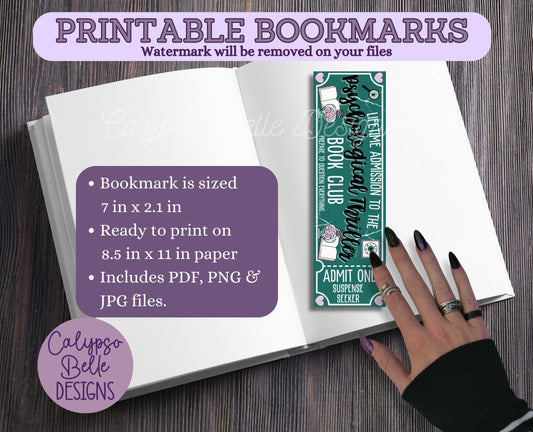 Psychological Thriller Admit One Book Club Printable Bookmark