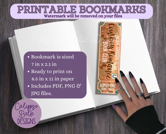 Cowboy Romance Admit One Book Club Printable Bookmark