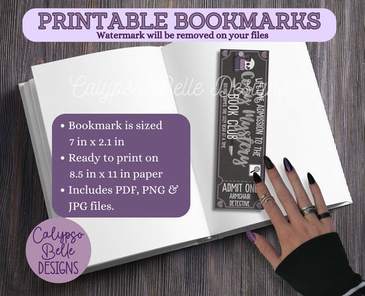 Cozy Mystery Admit One Book Club Printable Bookmark