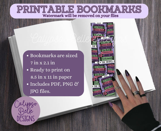 Book Tropes Stamps Printable Bookmarks, Enemies to Lovers Bundle