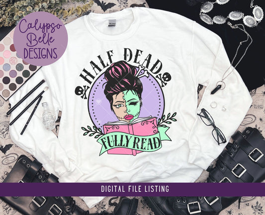 Half Dead, Fully Read, Spooky Bookish, Halloween Design