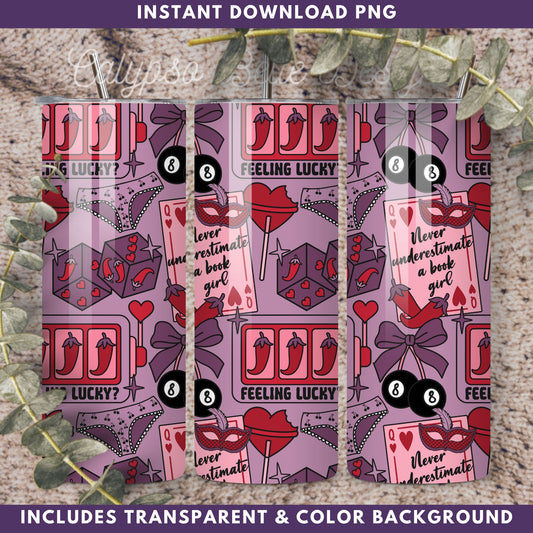 Good Girl Kinky Romance Reader 20 oz Skinny Tumbler Seamless Wrap, Bookish Pattern