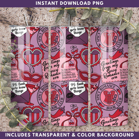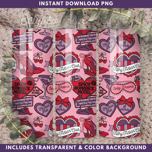 Spicy Romance Reader 20 oz Skinny Tumbler Seamless Wrap, Bookish Pattern