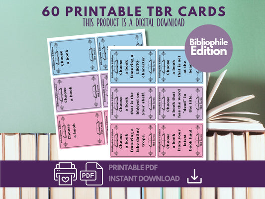 Bibliophile Edition, TBR Cards Printable, TBR Jar Printable, Bookish Printable