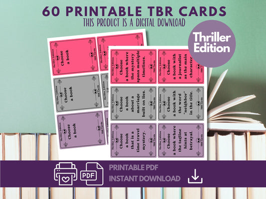 Thriller Edition, TBR Cards Printable, TBR Jar Printable, Bookish Printable
