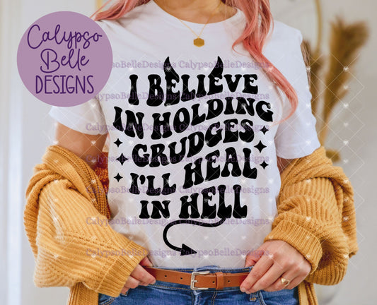 I Believe in Holding Grudges, I'll Heal in Hell, Wavy Retro with Pocket Design