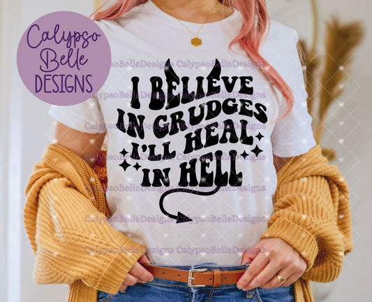 I Believe in Grudges, I'll Heal in Hell, Wavy Retro with Pocket Design