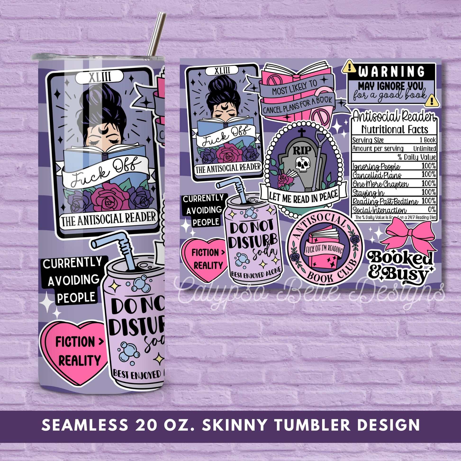 Antisocial Reader 20 oz Skinny Tumbler Seamless Wrap