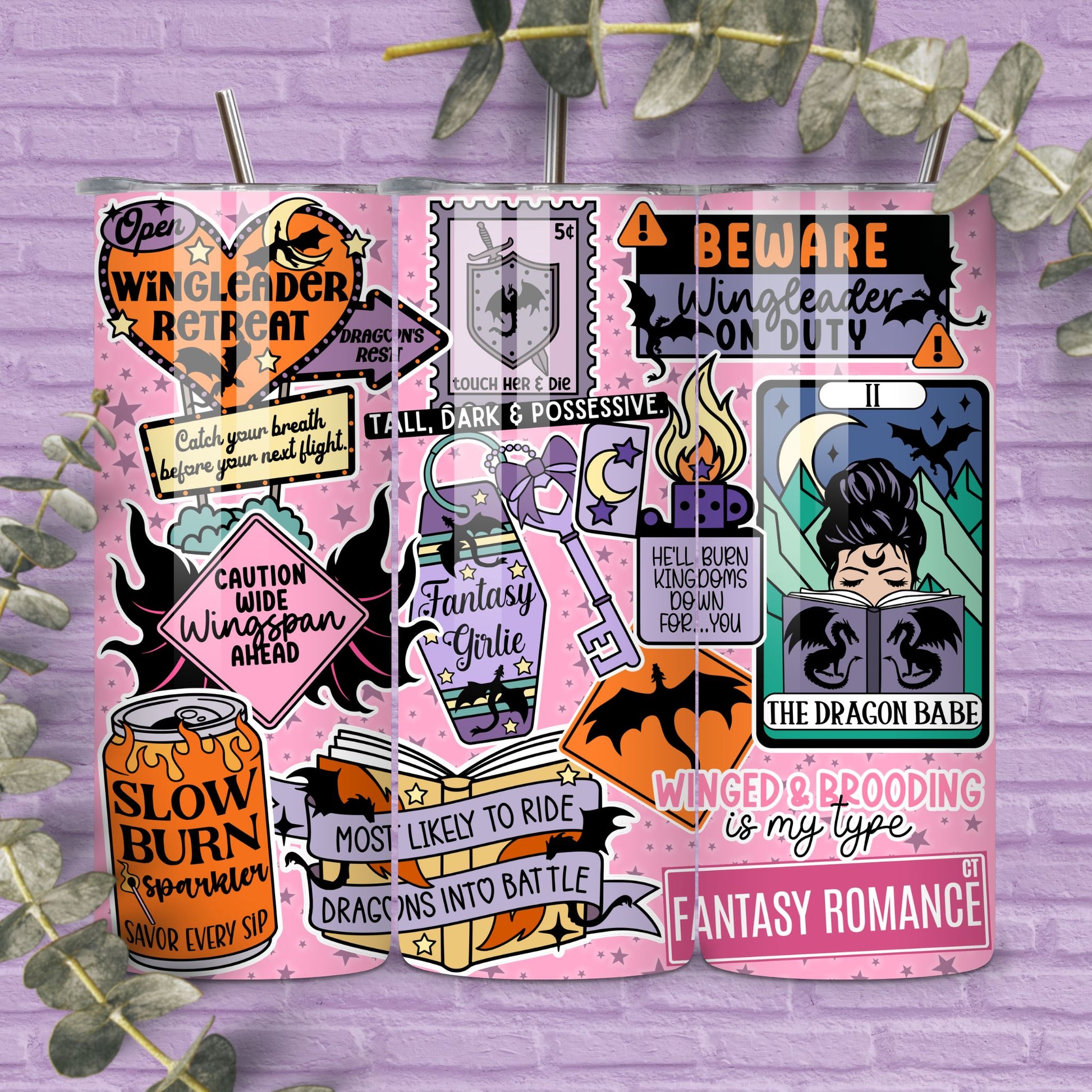 Dragon Babe, Romantasy Reader 20 oz Skinny Tumbler Seamless Wrap, Fantasy Romance Bookish Pattern