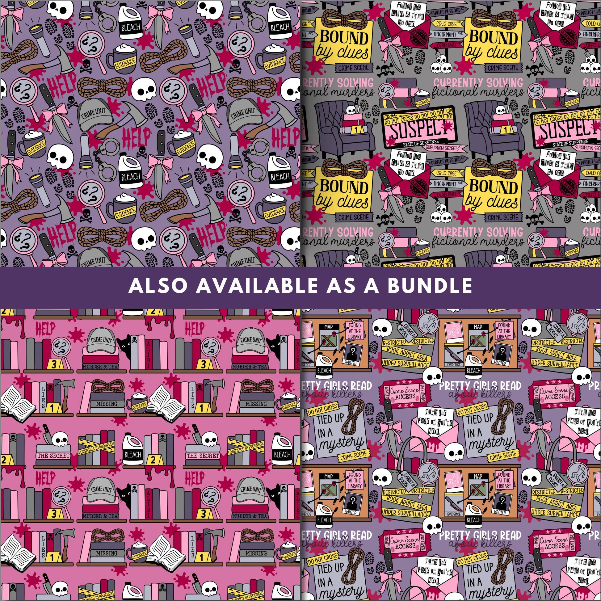 Thriller Girlie Seamless Pattern Bundle, Bookish Pattern
